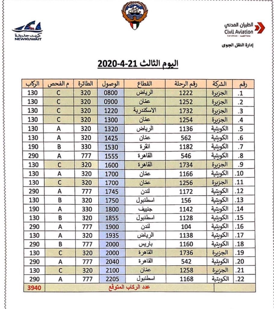 Kuwait Airways Pa Twitter جدول مواعيد وصول رحلات الأيام الثلاثة