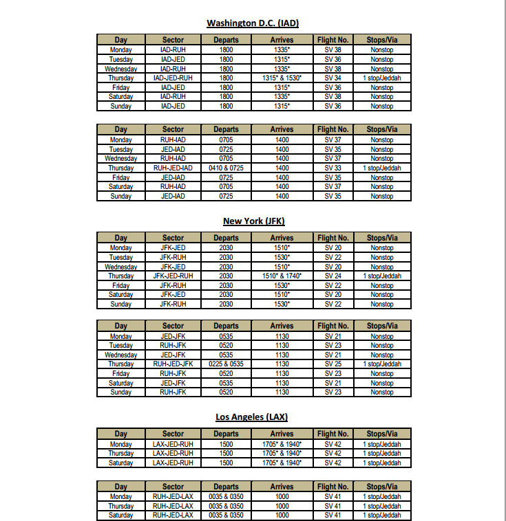 جدول رحلات الخطوط السعودية اجلاء
