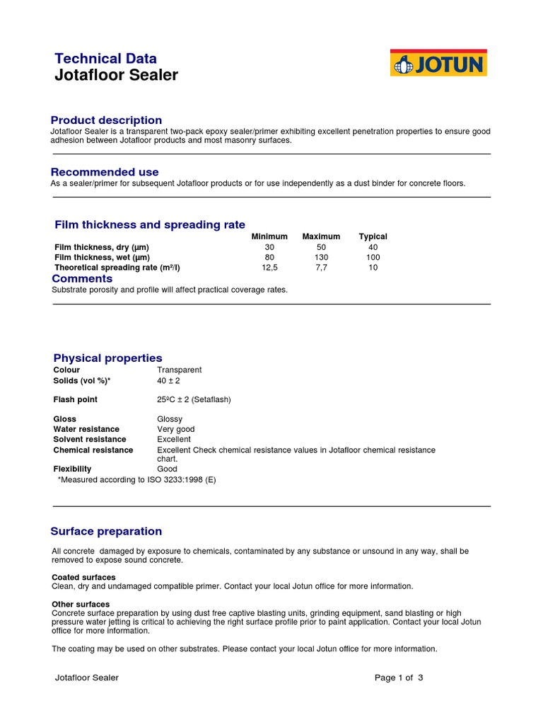 Technical Data Sheet Jotafloor Coating Jotun Sealer Or Jotafloor
