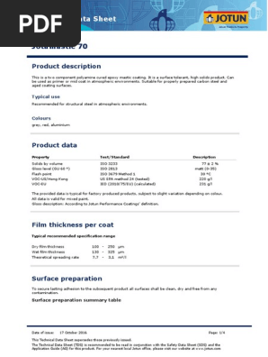 Tds Jotamastic 70 Gb English Protective Epoxy Cookware And