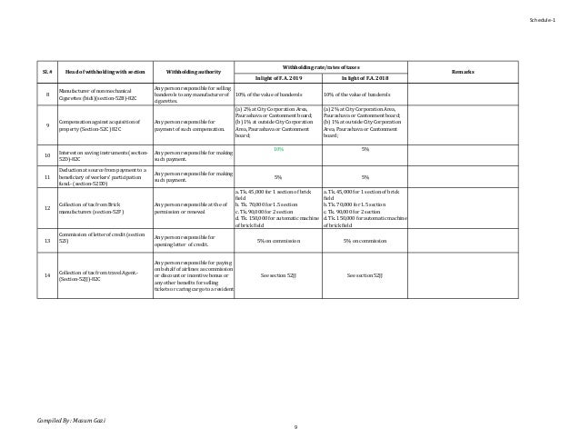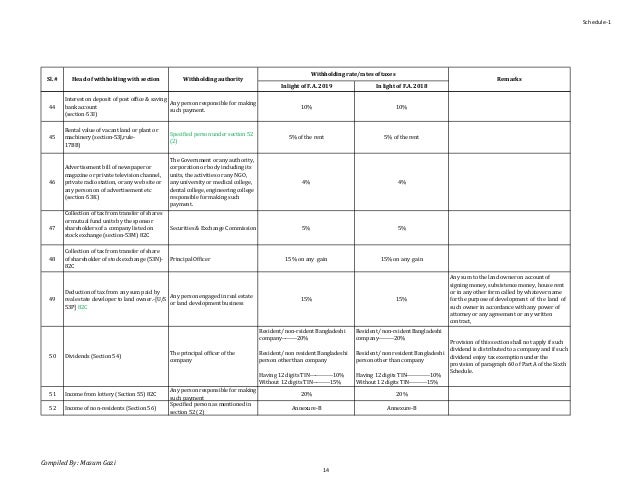 Tds Rates 2018 19 With Section References In Income Tax Of Bangladesh
